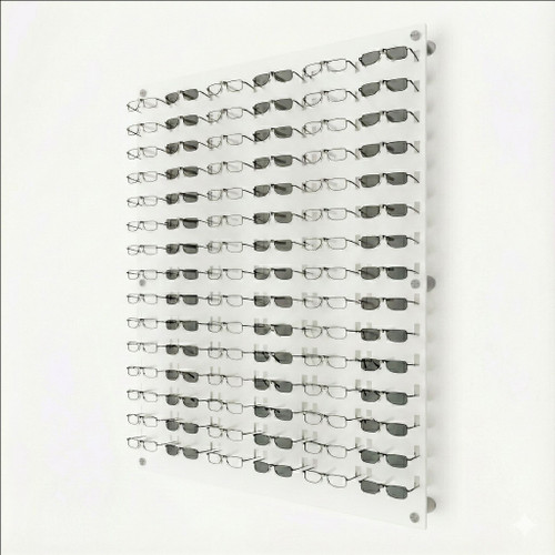 The DW Wall Mount acrylic panels from FrameDisplays.com stand as our flagship wall mount display, revered for their unparalleled value, top-notch performance, and innovative design. Meticulously crafted, they maximize frame capacity, presenting eyewear in an exceptional manner. Precision laser-cut ear-holes ensure secure support for frame temples.
